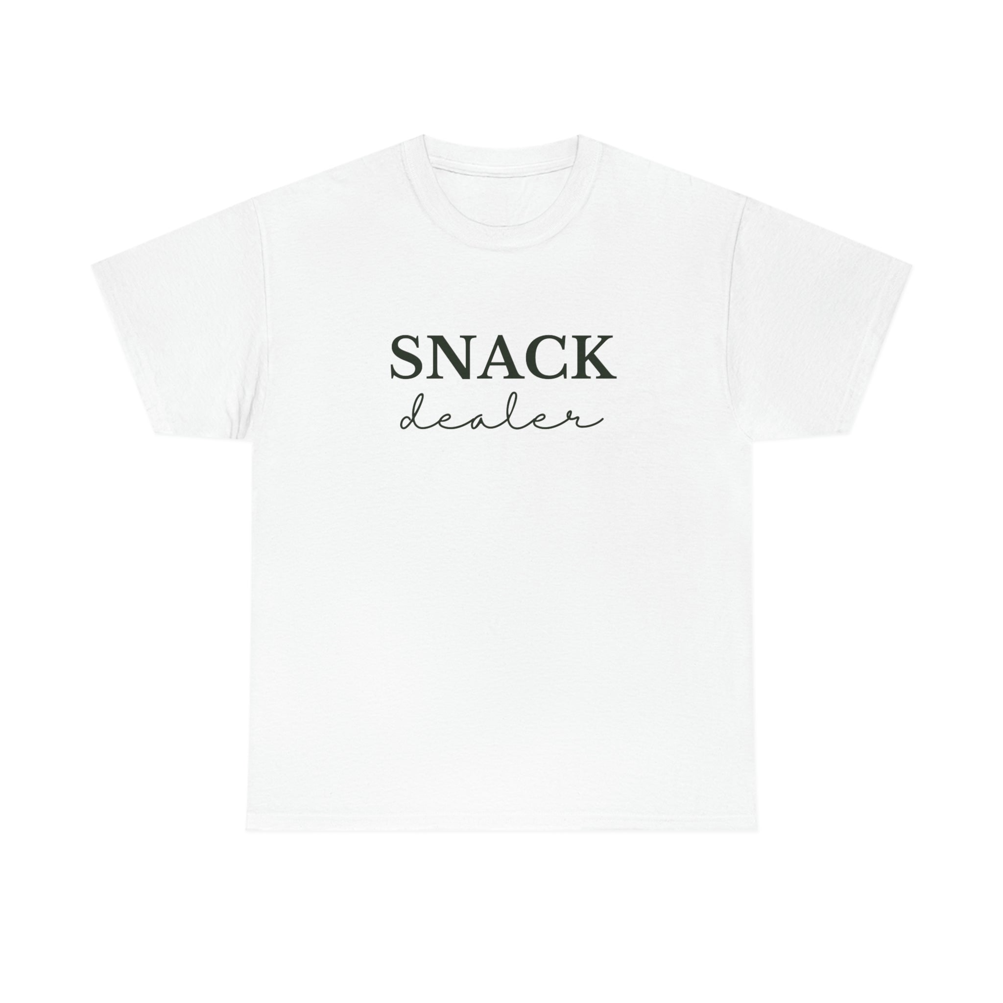 snack dealer, white t-shirt, funny, humorous, graphic tee, foodie, casual, comfortable, cotton, unique, novelty, trendy, food lover, gift, custom t-shirt, personalized t-shirt