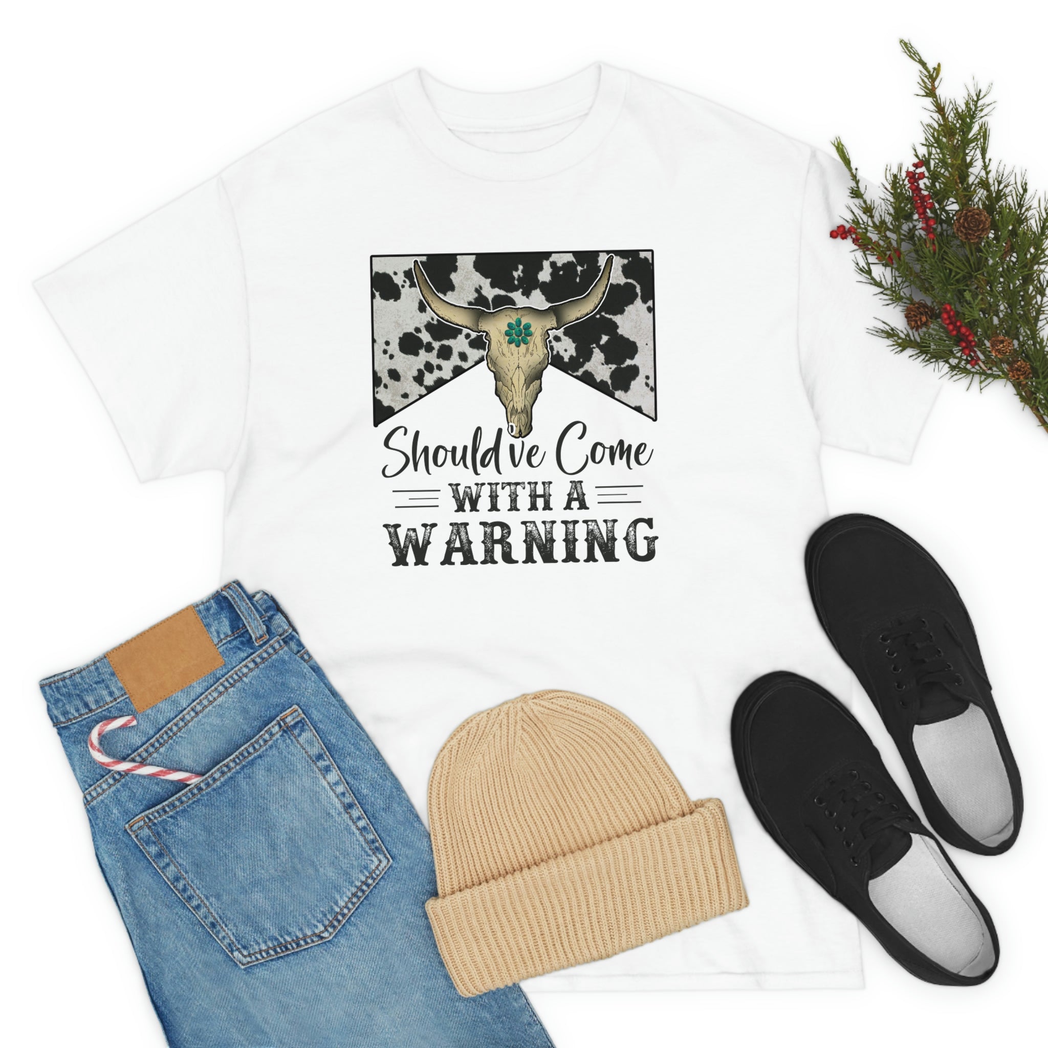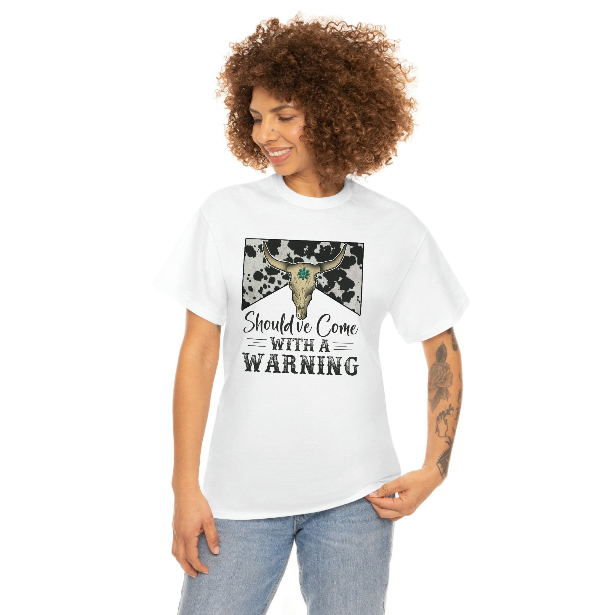 Should've Come With a Warning T-shirt, Country Music Shirt, Southern tee, Music Festival tee, Rodeo shirt, Western Cowboy tee, Country shirt The unisex heavy cotton tee is the basic staple of any wardrobe. It is the foundation upon which casual fashion grows. The specially spun fibers provide a smooth surface for premium printing vividity and sharpness. No side seams mean there are no itchy interruptions under the arms. The shoulders have tape for improved durability. .: 100% cotton (fiber content may vary for different colors) .: Medium fabric (5.3 oz/yd² (180 g/m²)) .: Classic fit .: Tear-away label .: Runs true to size