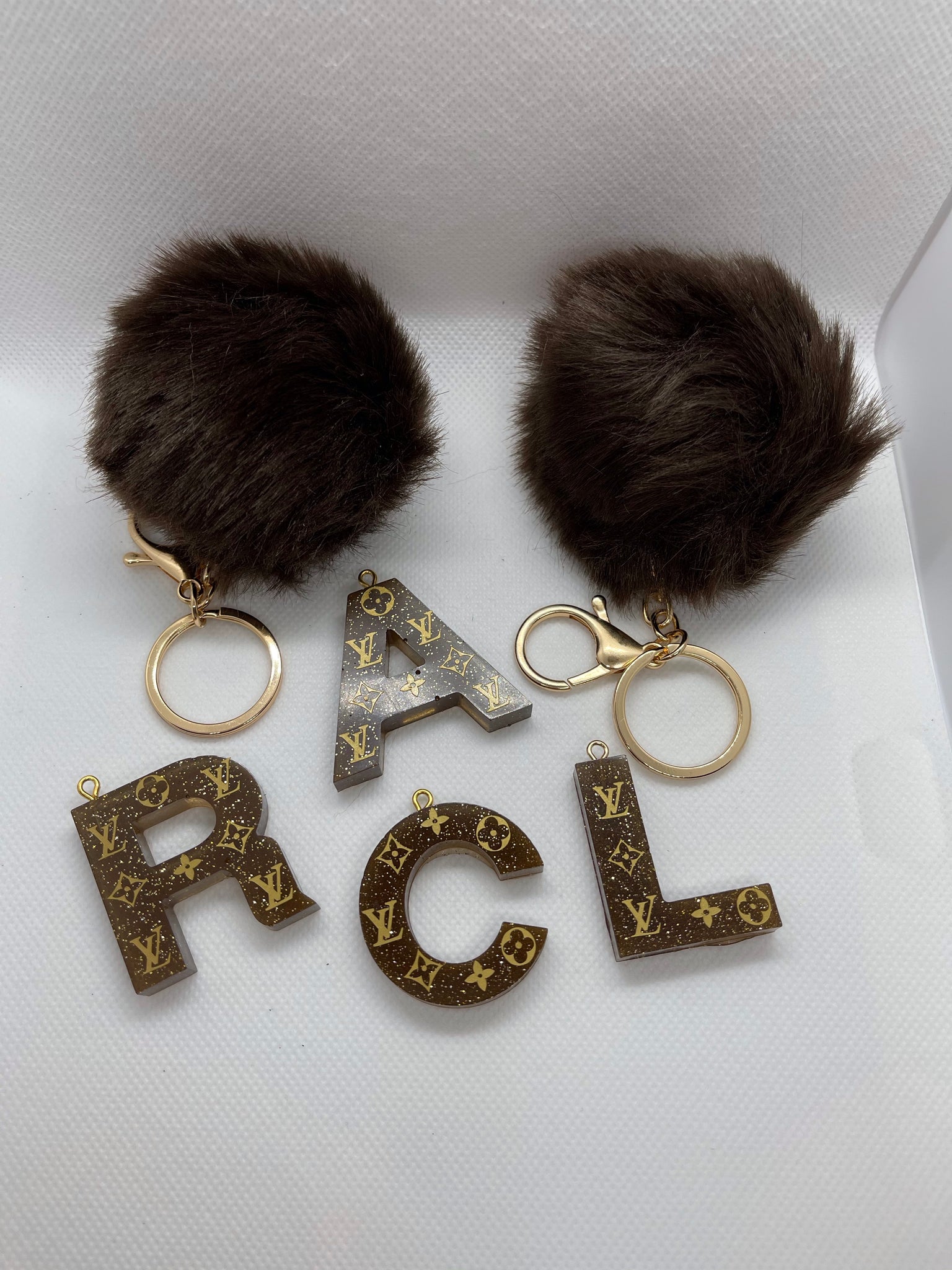 Designer inspired logo / resin letter keychain