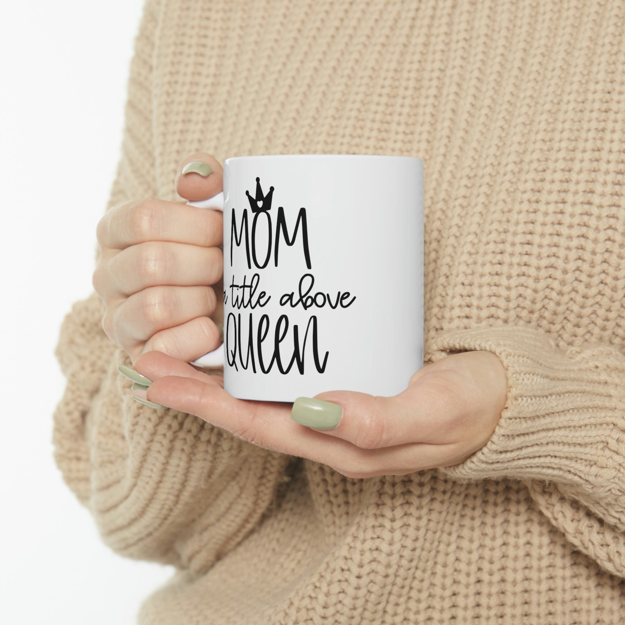 Looking for the perfect gift for a coffee-loving mom? Check out our "Mom Before Queen" coffee mug! This 11 oz. mug features a stylish and eye-catching design with the words "Mom Before Queen" in bold, black letters. It's the perfect way for busy moms to enjoy their morning cup of coffee and be reminded that they are appreciated.