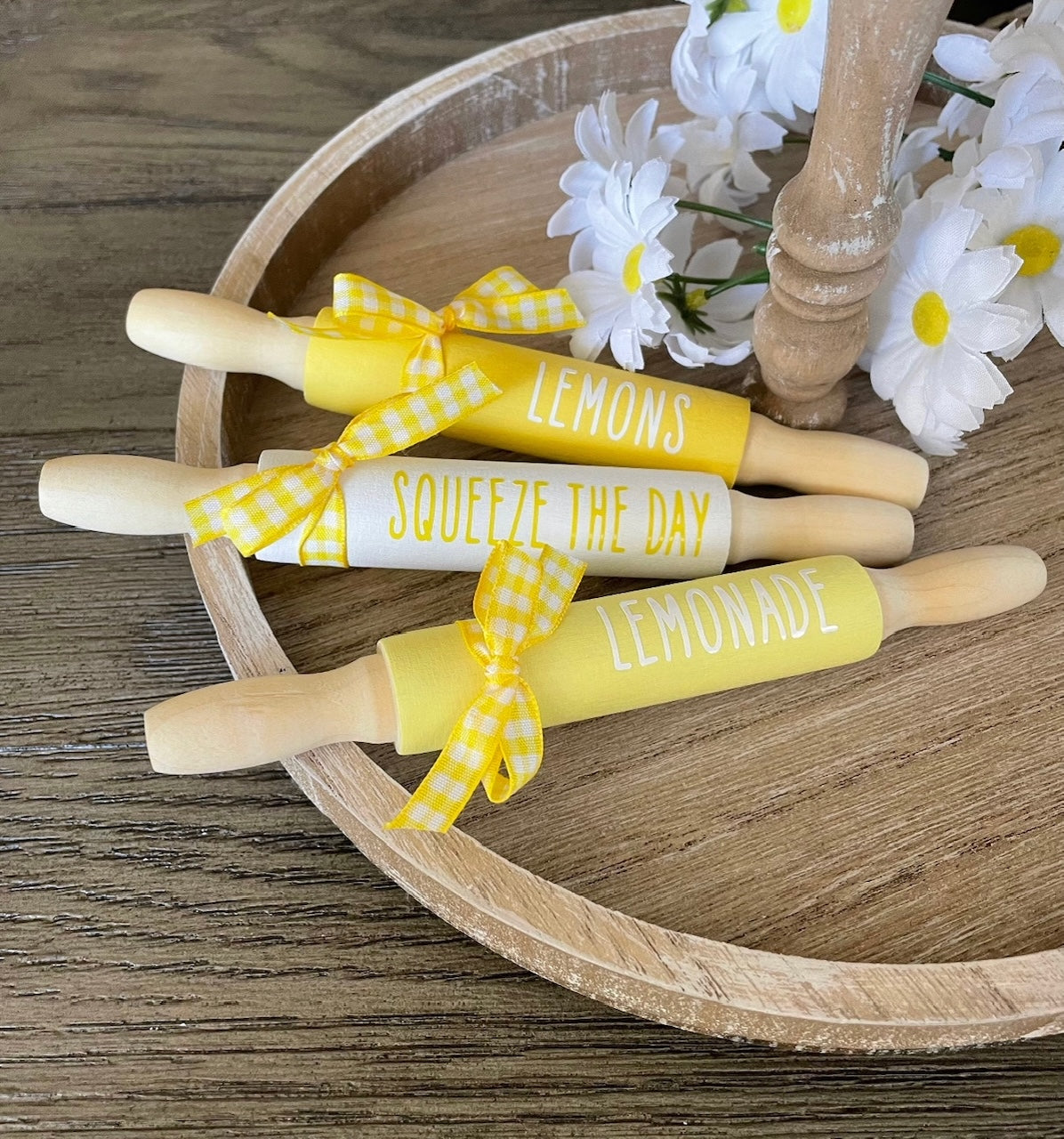 7'' Lemon Mini Rolling Pins, Farmhouse Tier Decor